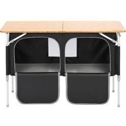 CAMPZ Table En Bambou 80x60x65cm Avec Filet De Rangement, Marron