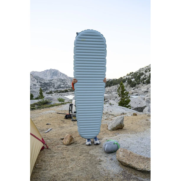 Thanks to innovative Triangular Core Matrix construction and ThermaCapture technology, the XTherm NXT generates an R-value of 7.3 at a weight of only 439 g (regular size). In other words, the best warmth-to-weight ratio ever achieved for a sleeping pad. This mat is warmer, lighter and thicker than the previous model, which is why the XTherm NXT is the first choice for mountain professionals, mountaineers and expeditions in extreme cold. Thanks to a thickness of 7.6 cm and horizontal chambers, this mat is particularly comfortable and provides good support. The underside of 70D nylon ensures that the XTherm NXT can withstand even prolonged use. The WingLock valve provides quick inflation and deflation. It is intuitively designed and can be used even with gloves. Anyone who requires reliable thermal performance even in freezing temperatures, without having to carry heavy luggage, is well served with the XTherm NXT.