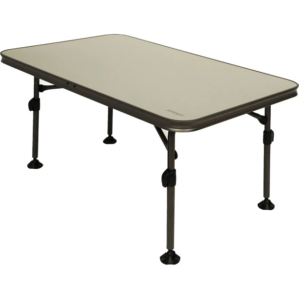 The superior Vango Atmos table has an impressive feature set offering much desired levels of functionality. The lightweight aluminium frame has a premium powder coated finish but also our « big foot » design feet to ensure stability. The modern resin table top ensures you no longer need to worry about dining in the rain or spilling your drinks thanks to its waterproof design. Moreover it is heatproof, enabling you to rest hot pans onto the table. With easy action, individual adjustable legs you can suit the table height to your dining requirements, or adjust for variances in the ground level. Whether you use in the garden or for camping, caravanning, motor homing or campervanning, it’s easy to transport due to its foldable, compact size.